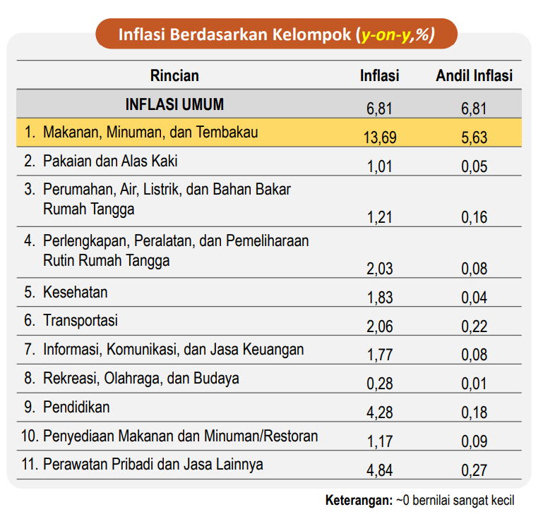 - Kab Aceh Tengah dengan inflasi y-on-y sebesar 5,80 %